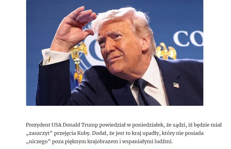PS Ambasada Polski w Hawanie w komunikacie na portalu X zaleciła osobom planującym podróż na Kubę bieżące śledzenie komunikatów przekazywanych przez linie lotnicze lub organizatorów podróży.Autor: WIARUS godzina: 12:50 Uzupełniając temat Kuby: