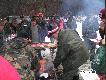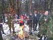 pretendent do króla polowaniaprzerwa na śniadanie. Wspaniały pomysł z rozkładanym rożnemProwadzęcy Kolega Marek dyryguje polowaniem i kiełbaskami